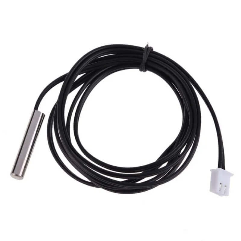 Датчик температуры (герметичный термистор) 10K NTC 3950, кабель 1м применяется в проектах на базе Ардуино, где нужна высокая степень герметичности. Терморезистор меняет свое сопротивление в зависимости от температуры, датчик фиксирует эти изменения. Сам термистор заключен в капсулу и залит специальным компаундом. Используется в промышленности, бытовой технике, электронных устройствах и системах коммуникации. Имеет отрицательный ТКС и сопротивление 10 кОм. Длина кабеля составляет 1 метр.