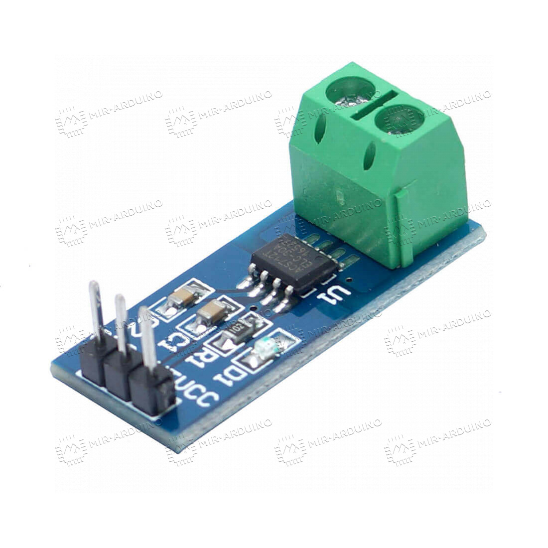 Датчик тока ACS712 30А используется для определения показателей проходящего тока. Датчик может применяться в устройствах, созданных на платформе Ардуино. Обеспечивает защиту от перегрузок по току. В составе датчика есть медная проволока, по которой пускается электрический ток, создавая магнитное поле. Его и фиксирует датчик. Все элементы собраны в компактный корпус, чтобы датчик можно было быстро и легко интегрировать в систему. Подключается к плате при помощи трех контактных выходов – на землю, на напряжение питания и на сам микроконтроллер.